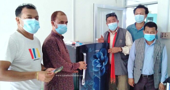 आइतवार मध्यान्ह कमलामाई नगरपालिका वडा नंं ६ स्थित कोभिड अस्तलातमा गाउँपालिकाका अध्यक्ष पानीराज बम्जनले सिन्धुली अस्पताल विकास समितिका अध्यक्ष प्रल्हाद पोखरेललाई सो रफ्रिजेरेटर हस्तान्तरण गर्नुभएको हो । रफ्रिजेरेटर हस्तान्तरणपछि संक्षिप्त प्रतिक्रिया दिंदै अध्यक्ष बम्जनले आफुहरु कोरोना रोकथाम र नियन्त्रणको पक्षमा रहेको र गंभीर प्रकृतिका विरामीहरुलाई उपचारमा सहजता होस् भन्ने उदेश्यले रफ्रिजेरेटर उपलव्ध गराएको बताउनुभयो । अस्पतालका अध्यक्ष प्रल्हाद पोखरेलले मरिण गाउँपालिकाबाट सिन्धुली अस्पतालले निरन्तर सहयोग प्राप्त गरिरहेको र आगामी दिनमा थप सहयोग प्राप्त हुने विश्वास व्यक्त गर्नुभएको थियो ।
