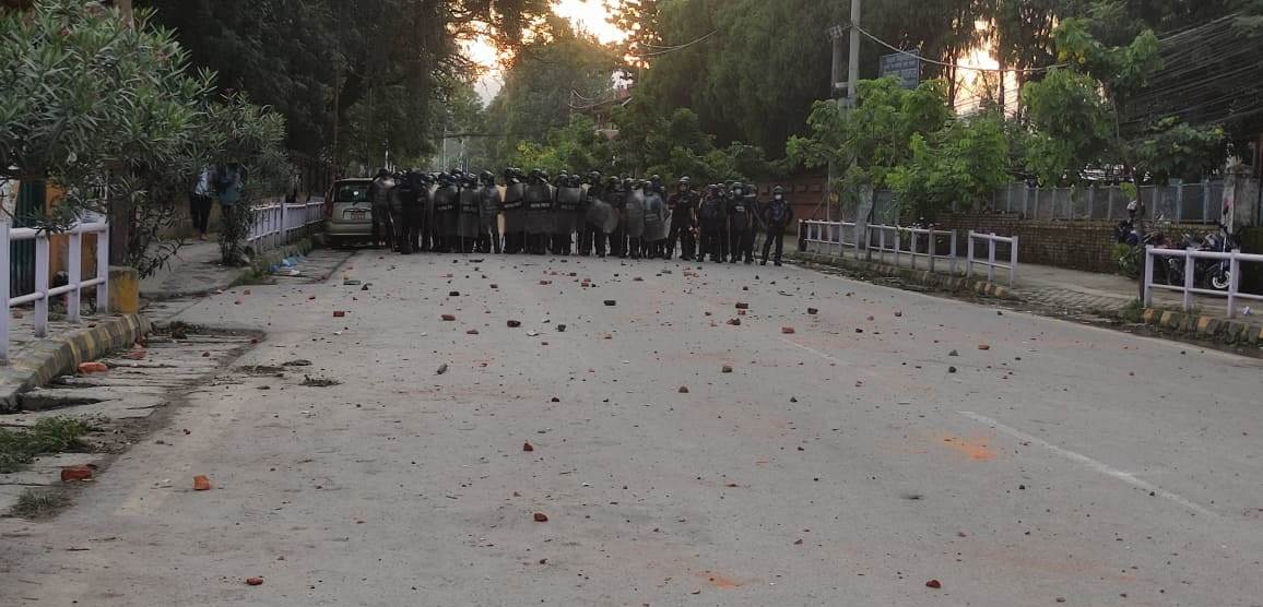 नेकपा एमालेका केपी ओली पक्षका विधार्थी संगठनले प्रदर्शन गरेका हुन्। उनिहरुले प्रहरीमाथी ढुंगा र इट्टा प्रहार गरेका छन्। स्थितीलाई नियन्त्रणमा लिन प्रहरीले बल प्रयोग गरिरहेको छ। एमाले फुट्ने भएपछि केपी ओली समूहका विधार्थीहरुले सरकारविरुद्ध प्रदर्शन गरेका हुन्।