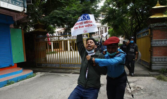 अमेरिकी सहायता परियोजना मिलेनियम च्यालेन्ज कर्पोरेशन (एमसिसी) को विरोधमा युवाहरुले नेपालस्थित कार्यालय अगाडि प्रदर्शन गरेका छन् ।