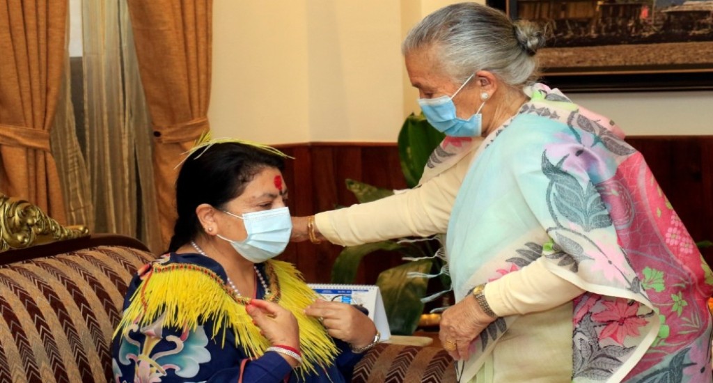 राष्ट्रपति विद्यादेवी भण्डारीले विजय दशमीको अवसरमा टीका ग्रहण गर्नुभएको छ । राष्ट्रपति कार्यालय शीतल निवासमा आमा मिथिला पाण्डेको हातबाट शुभसाइतको समयमै उहाँले विजयदशमीको टीका र जमराका साथै आशीर्वाद ग्रहण गर्नुभएको हो ।