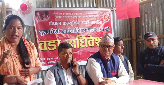 नेकपा एमाले सुनकोशी गाउँपालिकाका वडाहरुमा आज भएको अधिवेशनले सर्वसम्मत रुपमा वडाअध्यक्षहरु चयन भएकाछन् । आज भएको वडा अधिवेशनबाट क्रमशः वडा नं. १ मा बिनोद कोइराला, वडा नं. २ मा शिशिर गुर्मछान, वडा नं. ३ मा दिनेश आरन, वडा नं. ४ मा अम्बरदीप लामा वडा नंं ५ मा रत्न थापा, वडा नं. ६ मा रमेश दर्लामी र वडा नं. ७ मा लोकवहादुर कार्की सर्वसम्मत रुपमा चयन भएको एमाले वाग्मती प्रदेश कमिटी सदस्य अशोक गिरीले जानकारी दिनुभयो । उहाँका अनुसार प्रत्येक वडाबाट पालिका अधिवेशनका लागि २० जनाका दरले प्रतिनिधी चयन भएकाछन् ।