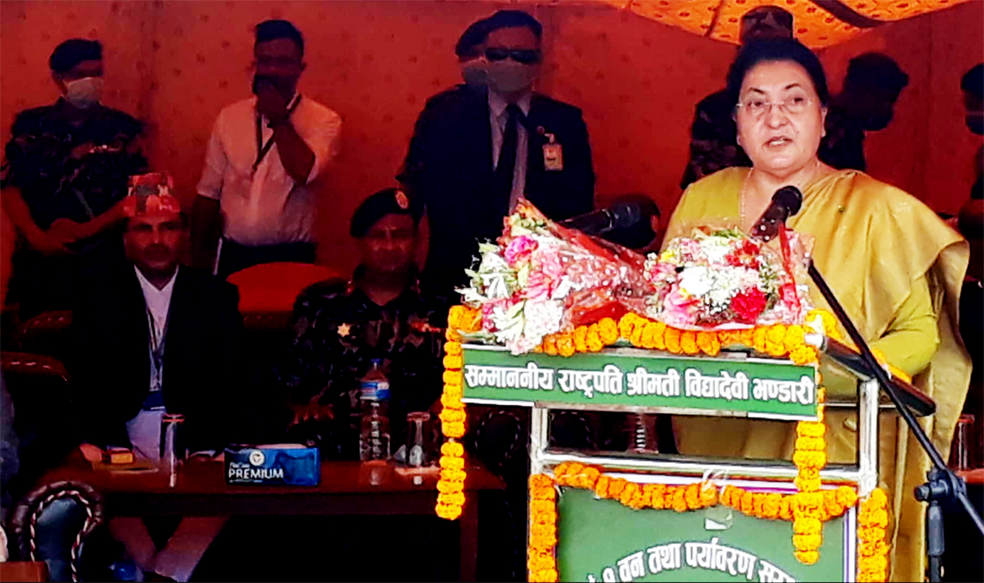 विशाल सामुदायिक वन क्षेत्रमा बर र पिपलका बिरुवा रोपेर राष्ट्रपति भण्डारीले आठौँ चुरे दिवस २०७९ को शुभारम्भ गर्नु भएको थियो । सो समारोहमा सम्बोधनका क्रममा उहाँले चुरे संरक्षणले स्थानीय समुदायको जीविकोपार्जनका अवसरहरू सिर्जन गर्ने बताउनुभयो ।