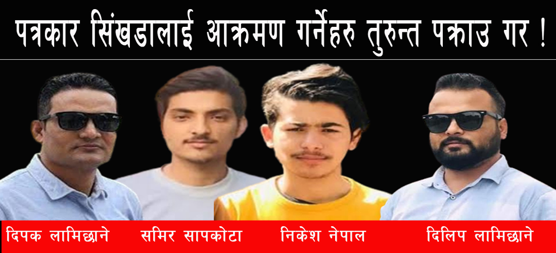 चितवन/पत्रकार शिशिर सिंखडालाई आक्रमण गर्नेहरू ३ दिनदेखि फरार रहेका छन । प्रहरीले खोजी कार्य जारी रहेको बताए पनि उनिहरु पक्राउ परेका छैनन् । जिल्ला प्रहरी कार्यालय चितवनका डिएसपी तथा प्रबक्ता नरहरी अधिकारीले पत्रकार सिंखडालाई आक्रमण गर्नेहरुको खोजी कार्य जारी रहेको बताएका छन । पत्रकार सिंखडामाथि गत बुधबार बिहान हातपात भएको हो । दैनिक कामको सिलसिलामा कालिका नगरपालिकामा पर्ने खोलेसिमल बजारबाट फर्कदै गरेको समयमा पत्रकार सिंखडालाई दिपक लामिछाने लगायत चार जनाको समुहले आक्रमण गरेको हो । लामिछाने कालिका नगरपालिकाका निवर्तमान मेयर खुमनारायण श्रेष्ठका स्वकीय सचीव (पिए) हुन । साथै उनी नेकपा (एमाले) कालिका नगर कमिटीका उपाध्यक्ष समेत रहेका छन । गत मंगलबार ‘कालिका नगरपालिकाका निवर्तमान मेयर श्रेष्ठ र पिए लामिछाने विरुद्ध २५ करोड भन्दा बढी भ्रष्टाचार गरेको भन्दै पुनः अख्तियारमा उजुरी’ शिर्षकमा विभिन्न दर्जन भन्दा बढी सञ्चार माध्यममा समाचार प्रकाशित भएका थिए ।