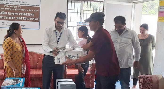 ग्रामीण पशु स्वास्थ्य कार्यकर्ताहरूलाई पशु उपचार तथा जाँच सामग्रीहरू बर्डिजो केस्टेटर– १ थान, माईक्रस्कोप– १ थान, ट्याग मेसिन– १ थान र कुल ब्कस– १ थान वितरण गरिएको छ । ग्रामीण पशु स्वास्थ्य कार्यकर्तालाई बिउ पुँजिको रूपमा १० हजारको औषधिसमेत प्रदान गरिएको समाजका अध्यक्ष नवराज पहाडीले प्रदेशखबरलाई जानकारी दिए ।