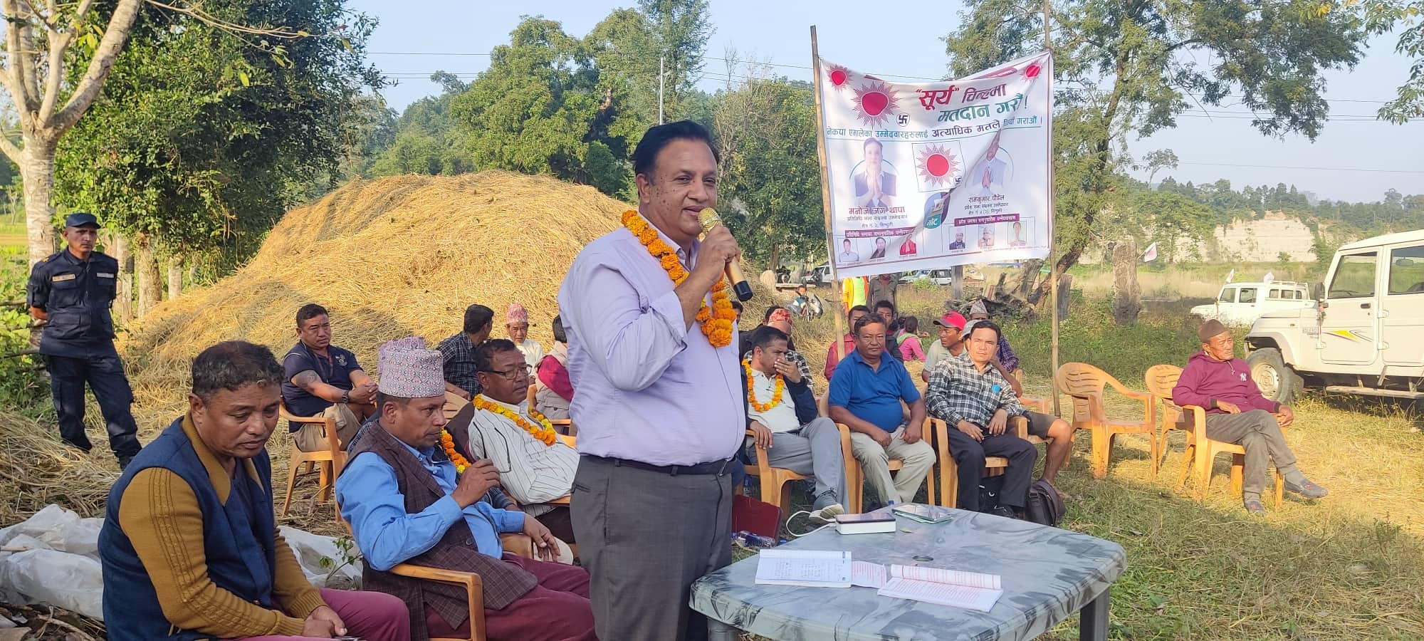 यस क्षेत्रमा अथाह कृषिको संभावना पनि छ, रोजगारी सिर्जना गर्न सकिने अबस्था छ, त्यही कारणले पनि हामीले मरिण, हरिहरपुरगढी र ध्याङलेख क्षेत्रको विकासका लागि पाँच प (पानी, पर्यटन, पूर्वाधार, परिश्रम र परिवार) को अबधारणा सार्वजनिक गरेको बताउँदै सिन्धुलीका जिल्लाकै बौद्धिक उमेदवारका रुपमा चिनिएका थापाले भन्नुभयो: अहिले तपाईहरु समक्ष नेकपा एमाले सिन्धुलीका सबै नेताहरु हुनुहुन्छ, उहाँहरुकै अगाडि अहिले जे प्रतिवद्धता गरिएका छौं, त्यो व्यवहारमैं लागु गर्न हामीबाट हामी पछाडि हट्ने छैनौं । पार्टीका केन्द्रीय तथा जिल्ला नेताहरु तपाईहरुको समस्या बुझ्न र पार्टीका तर्फबाट गरिएको प्रतिबद्धताहरु पुरा गराउन सक्रिय हुनुहुने बताउँदै विगतका प्रतिनिधीले अर्थात बिचारधाराका आधारमा यस क्षेत्रमा माओवादी केन्द्रले विकासमा भेदभाव गरेकोले त्यसलाई अन्त्य गर्न मंसिर ४ गते सूर्य चिन्हमा मतदान गर्न अपील गर्दछु ।