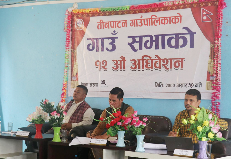 साथै आर्थिक वर्षका लागि विभिन्न समितिहरू छनोट गर्दै तीनपाटन गाउँपालिका अध्यक्ष तथा कार्यक्रमको सभाध्यक्ष कर्ण बहादुर थापा मगरले ५९ जना गाउँ सभाका सदस्यहरुले जनताको हित सुशासन, समृद्धि ल्याउन घरघरमा सेवा पुर्याउन जनप्रतिनिधि र कर्मचारी मिलेर तीनपाटनलाइ समृद्ध बनाउन लाग्नु पर्ने बेला आएको बताउनुभयो । बेरुजु लाई शून्यमा पुर्याउन सबै मिलेर जुट्नु पर्ने धारण व्यक्त गर्दै उपस्थित सम्पूर्ण वडा अध्यक्ष, गाउँ सभा सदस्य, कर्मचारी सबैलाई धन्यावाद ज्ञापन गर्दै सभाको समापन गर्नु भयो ।