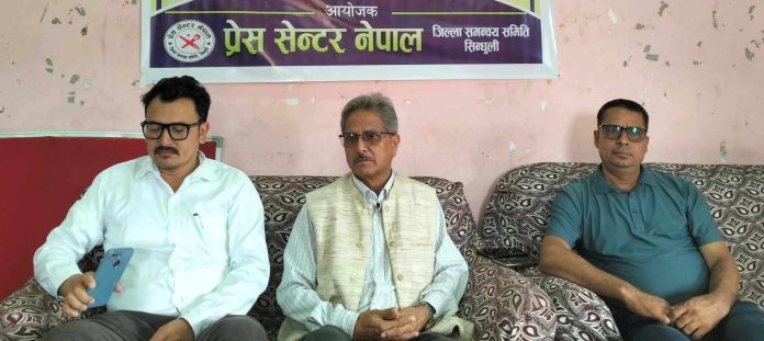 प्रेस सेन्टर सिन्धुलीका अध्यक्ष नबीन श्रेष्ठको अध्यक्षतामा पत्रकार सम्मेलन आयोजना गरिएको थियो ।