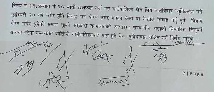 गोलन्जोर गाउँपालिका सिन्धुलीले बढ्दो बालविबाह रोक्नका लागि कठोर निर्णय गरेको छ । गाउँकार्यपालिकाको बहुमतले उमेर पुगेर बिवाह गर्नु पूर्व त्यसको प्रमाणित कागजातसहित सम्बन्धित वडा कार्यालयबाट शिफारिश लिन सरोकारवाला सबैमा अपील गरेको छ ।