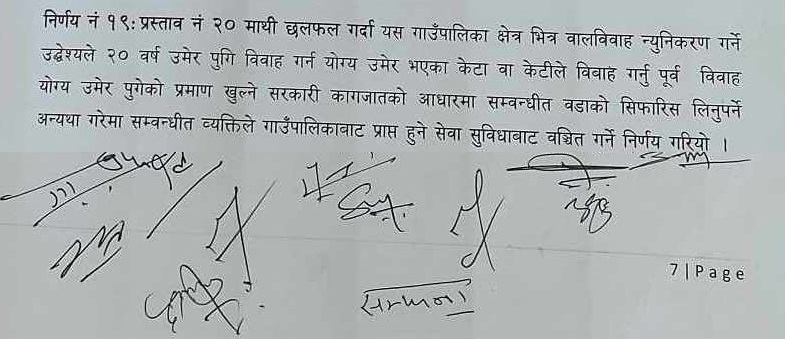 गाउँपालिका अध्यक्ष शंकर बरालका अनुसार गाउँपालिकामा वालबिवाहका घटनाहरु सार्वजनिक हुन थालेपछि नीतिगत निर्णयगर्दै त्यसलाई कडाइका साथ रोक लगाएको हो ।