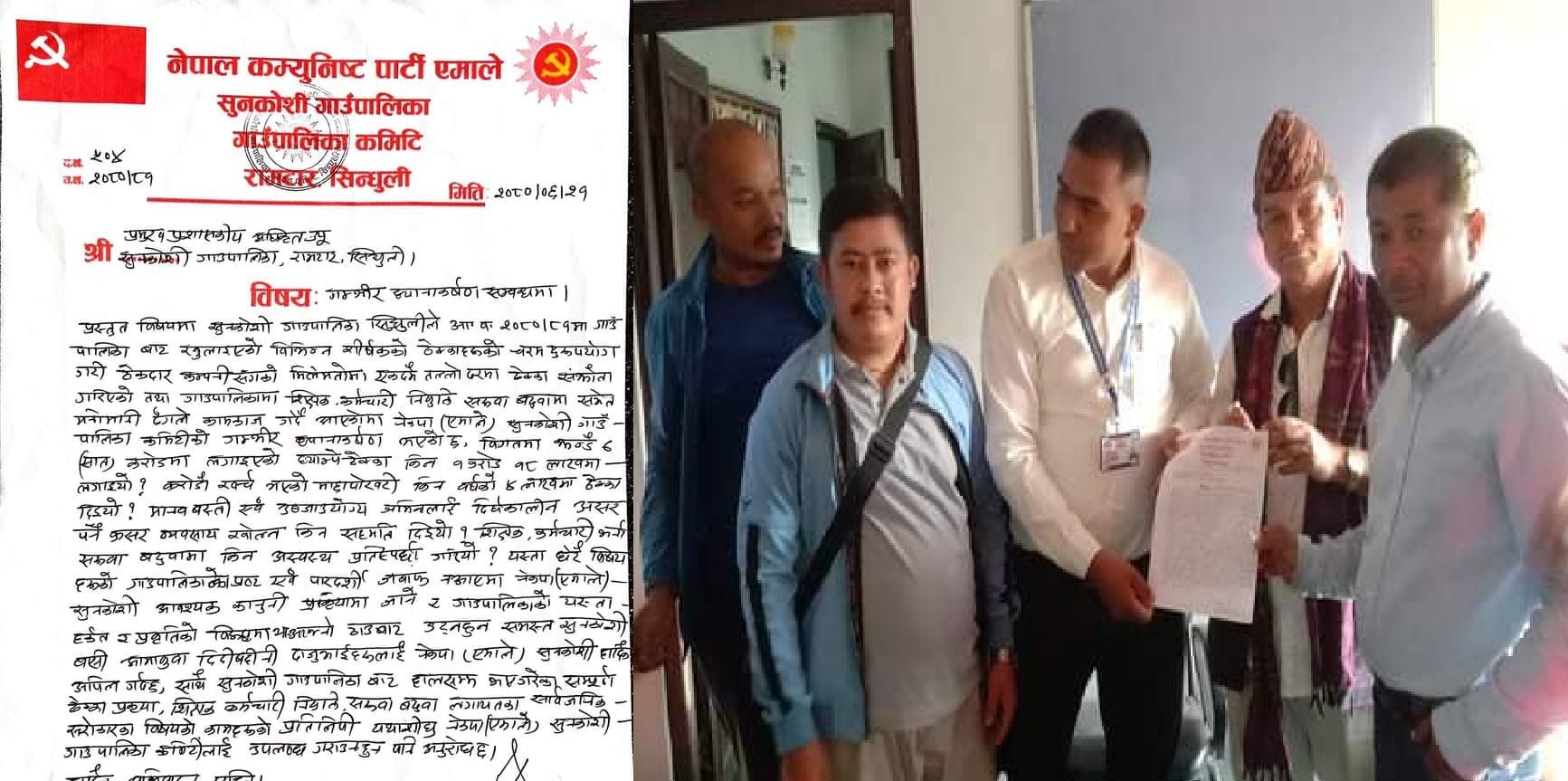बागमती प्रदेशको करोडौं लगानीमा निर्माण गरिएको माछा पोखरी कौडीको मोलमा ठेक्का लगाएको भन्दै नेकपा एमाले सुनकोशी गाउँ पालिका कमिटीले ठेक्का प्रक्रिया र उब्जाउ क्षेत्रलाई मरुभूमि बनाउँदै क्रसर खोल्न दिइएको भन्दै आपत्ती जनाएको छ । पालिका कमिटी अध्यक्ष अशोक गिरीको नेतृत्वमा गएको एमाले सुनकोशीका प्रतिनिधी मण्डलले पालिका उपाध्यक्ष कपिल कोइरालालाई ज्ञापनपत्र बुझाउँदै शिक्षक सरुवा भएको गलत क्रियाकलाप बन्द नगरे कठोर निर्णय गर्न आफुहरु बाध्य हुने भनिएको छ ।