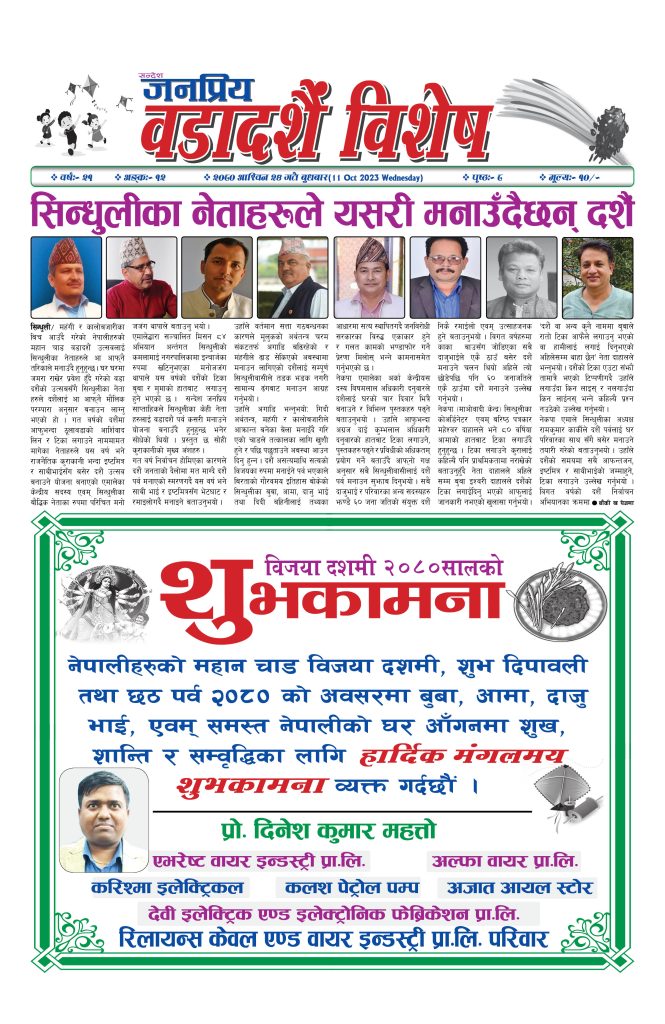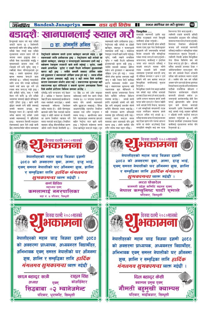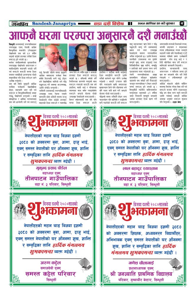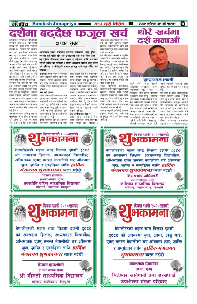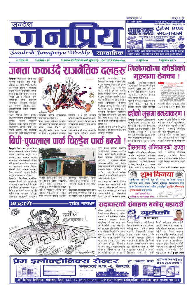 सन्देश जनप्रिय साप्ताहिक अंक १२ मिति २०८० असाेज २४ गते बुधवार प्रदेशखबर संवाददाता - २४ आश्विन २०८०, बुधबार १४:५० janapriya saptahik anka 12 – 2080 ashoj 24Download