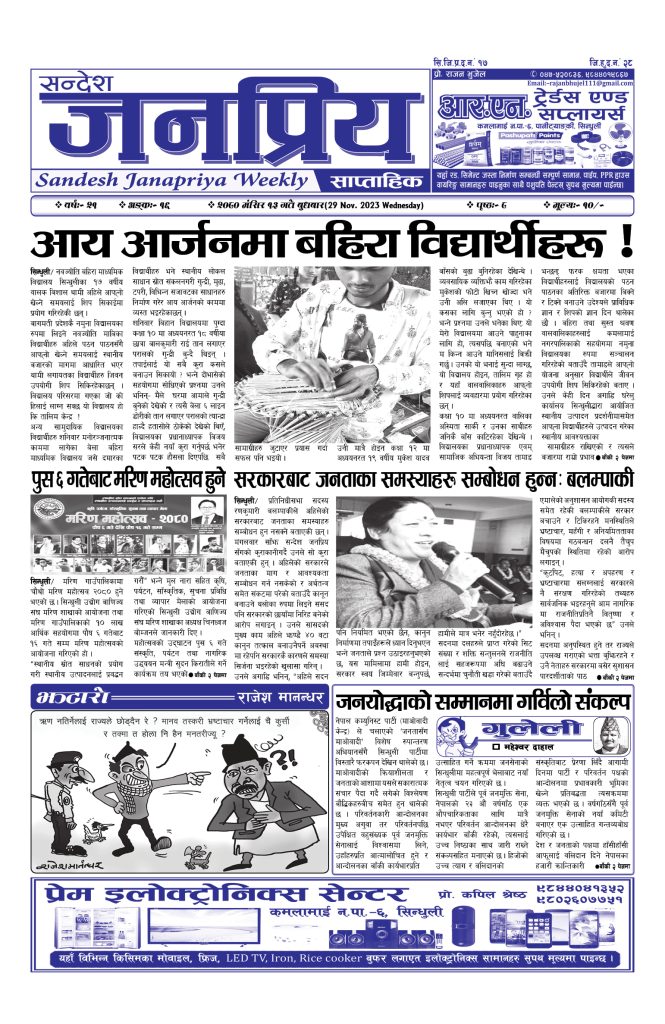 सन्देश जनप्रिय साप्ताहिक अंक १६ मिति २०८० मंसिर १३ गते बुधवार प्रदेशखबर संवाददाता - १३ मंसिर २०८०, बुधबार ०४:२५ janapriya saptahik anka 16 – 2080 Mangsir 13 Epaper pageDownload