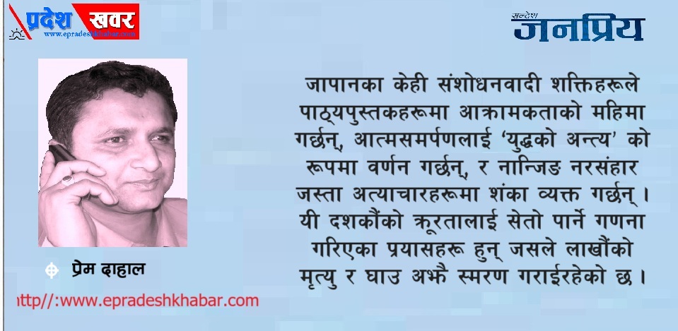 बरु, जापानका केही संशोधनवादी शक्तिहरूले पाठ्यपुस्तकहरूमा आक्रामकताको महिमा गर्छन्, आत्मसमर्पणलाई ‘युद्धको अन्त्य“ को रूपमा वर्णन गर्छन्, र नान्जिङ नरसंहार जस्ता अत्याचारहरूमा शंका व्यक्त गर्छन् । यी दशकौंको क्रूरतालाई सेतो पार्ने गणना गरिएका प्रयासहरू हुन् जसले लाखौंको मृत्यु र घाउलाई अझै स्मरण गराईरहेको छ ।