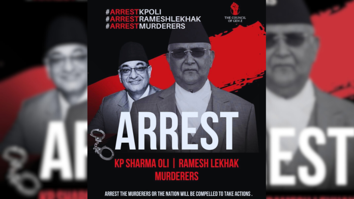 उनीहरूले ओली र लेखकले जेनजीहरूको हत्या गरेको भन्दै तत्काल पक्राउ गर्न सामाजिक सञ्जालमार्फत् दबाब बढाएका हुन्। यसअघि यी दुवै नेतालाई विदेश जानका साथै उपत्यका छाड्नसमेत रोक लगाइएको थियो। जेनजी अभियानकै अभियन्ता रक्षा बलमे भने अर्कै पोस्टर सेयर गरेकी छन्, जसमा ओलीको मात्रै फोटो छ।