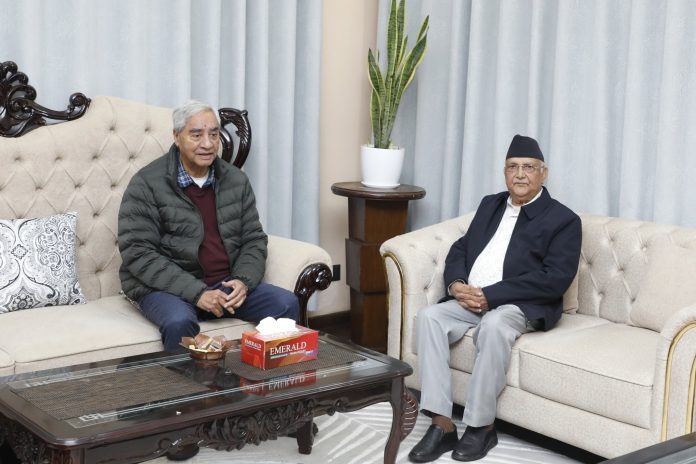 मधेशमा कांग्रेसले सत्ता सहकार्य तोडेकै दिन ओलीले आज देउवालाई निवास महाराजगन्जमा पुगेर भेट गरे। जेनजी आन्दोलनपछि ओली र देउवाको यो पहिलो भेट हो। भेटमा देउवा पत्नी आरजु राणा र ओलीपत्नी राधिका शाक्य पनि सहभागी थिए।