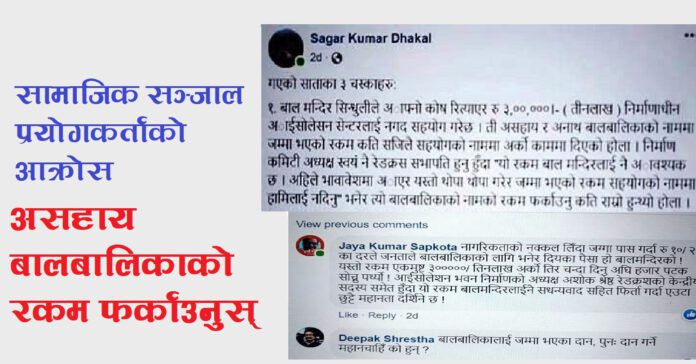 पत्रकार दीपक श्रेष्ठ प्रश्न गर्नुहुन्छः बालवालिकालाई जम्मा भएका दान, पुनः दान गर्ने मानवचाँहि को पर्नुभएछ ?