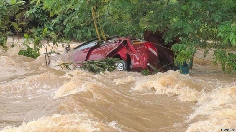 भारतको आन्ध्र प्रदेश र तेलंगानामा भीषण वर्षा भएको छ । वर्षासँगैको बाढीका कारण सडकहरुले नदीको रुप लिएका छन् ।