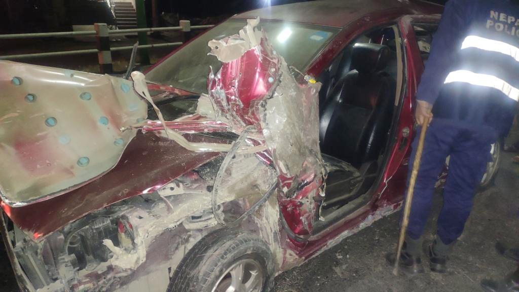 दुर्घटनामा कारको अगाडिपट्टीको भाग फलामको बार भएको पोलमा ठोक्किएर ६० फिटसम्म क्षति पुगेको थियो । यत्रो दुर्घटना हुँदा अरुलाई केही नहुनु शंकास्पद भएको मृतकका पति राजुले दाबी गरेका थिए ।
