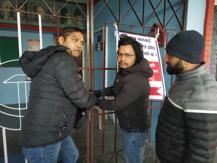 उनीहरुले भवनको मूल गेटमा विज्ञप्ति टाँसेर ताला लगाउनुको कारण उल्लेख गरेका छन् ।