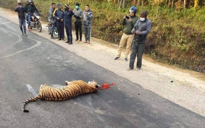 हेटौंडाबाट सर्लाही जाँदै गरेको बा १६ च ८११ नम्बरको कारले बाटो क्रस गर्दै गरेको बाघलाई आज बिहान ७ः२० मा ठक्कर दिएको थियो । कारको ठक्करबाट बाघको राजमार्गमै मृत्यु भएको बारा प्रहरीले जनाएको छ ।