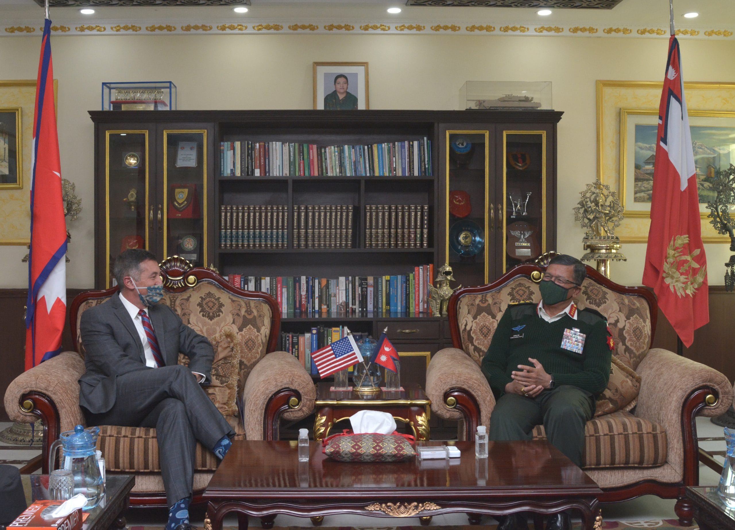 राष्ट्रपति बाइडेनको सन्देश भन्दै उनी राज्यका विभिन्न महत्वपूर्ण निकायका अधिकारीलाई भेटिरहेका छन्। यसैबीच उनले शुक्रबार नेपाली सेनाका प्रधानसेनापति पूर्णचन्द्र थापालाई भेटे।