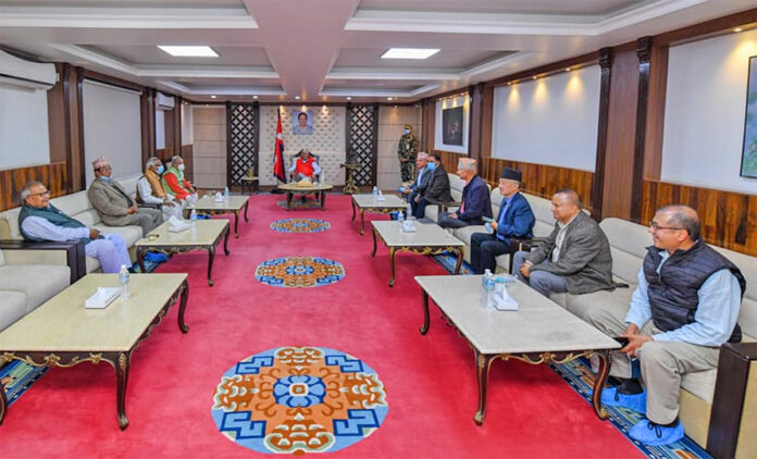 प्रधानमन्त्री ओलीले बिहीबार एमाले शीर्ष नेताहरुलाई राखेर जसपाका नेताहरुसँग छलफल गरेका थिए । पदाधिकारीको बैठक सकेर जसपाका अध्यक्ष महन्थ ठाकुर र उपेन्द्र यादव, वरिष्ठ नेता राजेन्द्र महतो, अशोक राईलगायतका नेता एमालेसँगको छलफलका लागि प्रधानमन्त्रीको सरकारी निवास बालुवाटार पुगेका थिए ।