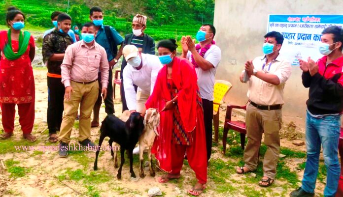आर्थिक अबस्था कमजोर भएका नागरिकहरुलाई लक्षितगर्दे तीन वर्षे कार्यक्रम अन्र्तगत यस वर्ष वडा नं. ६ मा ५० वटा बाख्रा वितरण गरिएको हो । सो अबसरमा अध्यक्ष कार्कीले गाउँपालिकामा २५० वटा उन्नतजातका बाख्रा र बोका वितरण गरिने जानकारी गराएका थिए ।-अशोक ठकुरीबाट