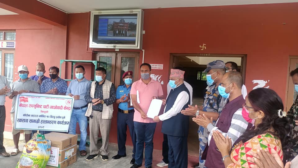 नेपाल कम्युनिष्ट पार्टी (माओवादी केन्द्र) सिन्धुलीले जिल्ला कोभिड १९ व्यवस्थापन केन्द्र (डिसिसिएमसि) लाई एका कार्यक्रमका बीच स्वास्थ्य सामाग्री हस्तान्तरण गरेको छ ।