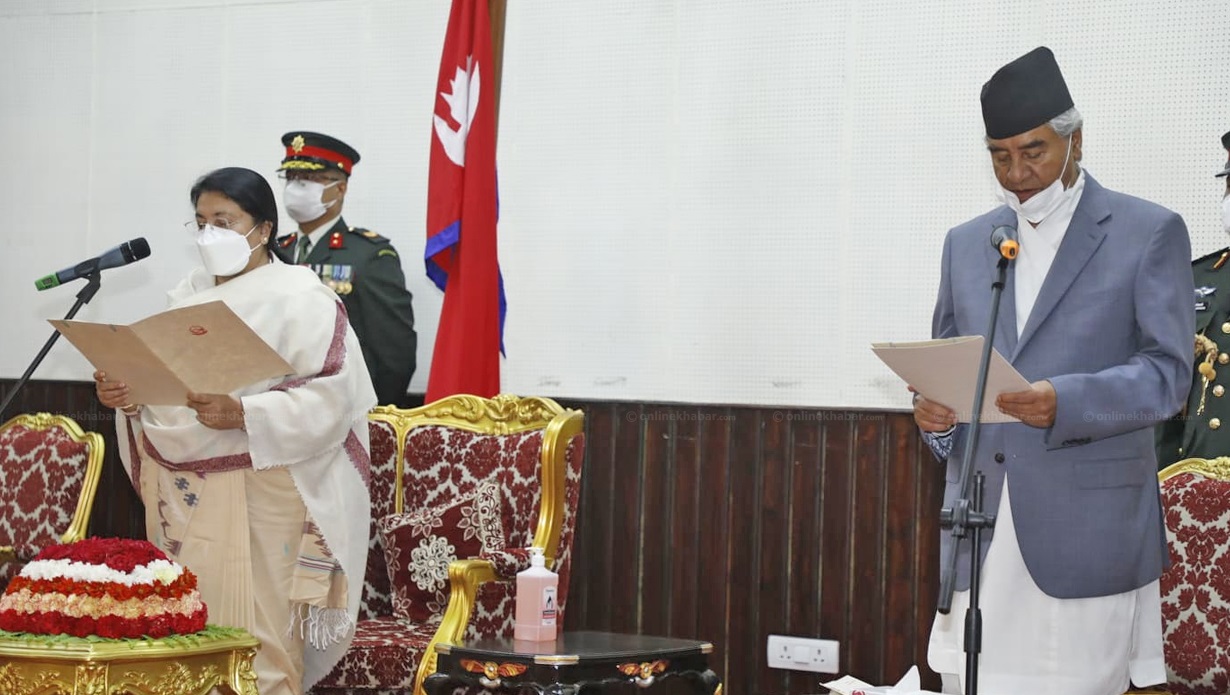 सर्वोच्च अदालतको फैसलापछि राष्ट्रपति भण्डारीले मंगलबार दिउँसो देउवालाई प्रधानमन्त्रीमा नियुक्त गरेकी हुन् । राष्ट्रपति भण्डारीले प्रधानमन्त्री नियुक्तिमा संविधानको धारा उल्लेख नगरेको भनी देउवाले नियुक्ति सच्याएर मात्र शपथ लिने अडान लिएका थिए ।